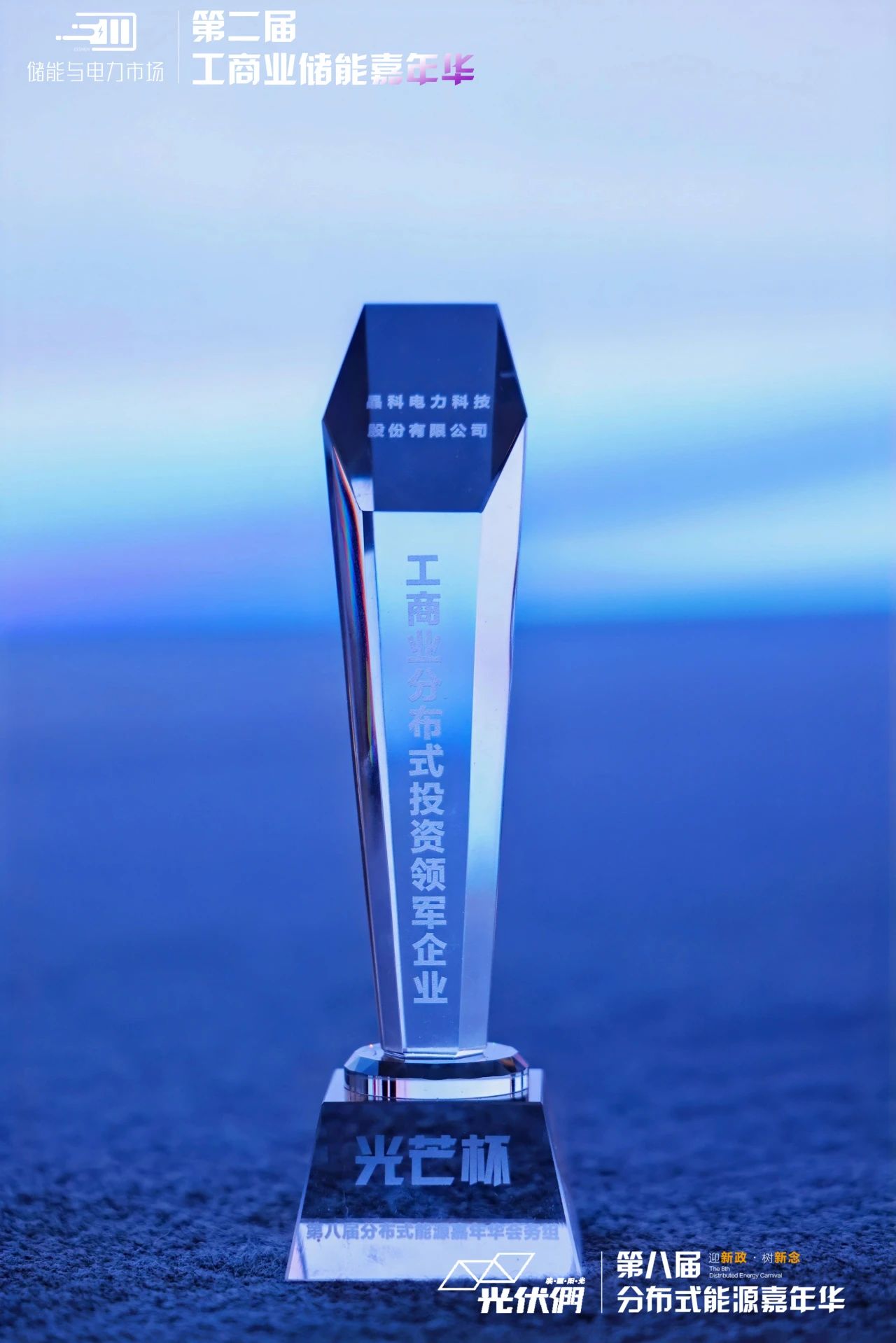 昨日,由中国光伏行业协会、光伏們、风芒能源、储能与电力市场联合主办的第八届分布式能源嘉年华研讨会在浙江杭州召开。在大会“光芒杯”颁奖典礼上,js333金沙线路检测科技凭借在分布式光伏投资领域的卓越贡献与市场影响力,荣获主办方颁发的“工商业分布式投资领军企业”奖。