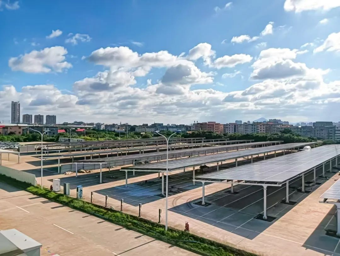 该项目位于福建莆田市涵江区云度汽车生产基地,光伏总装机容量超14MW,包含12MW厂房屋顶装机和2MW光伏车棚,投运后预计年发电量超1400万度,年减排二氧化碳排放超11000吨。车棚区域充分利用停车场建设光伏,配套的光储充车位,实现光伏发电为新能源汽车的绿色供能,创造停车、发电、空间资源高效变现多重价值。